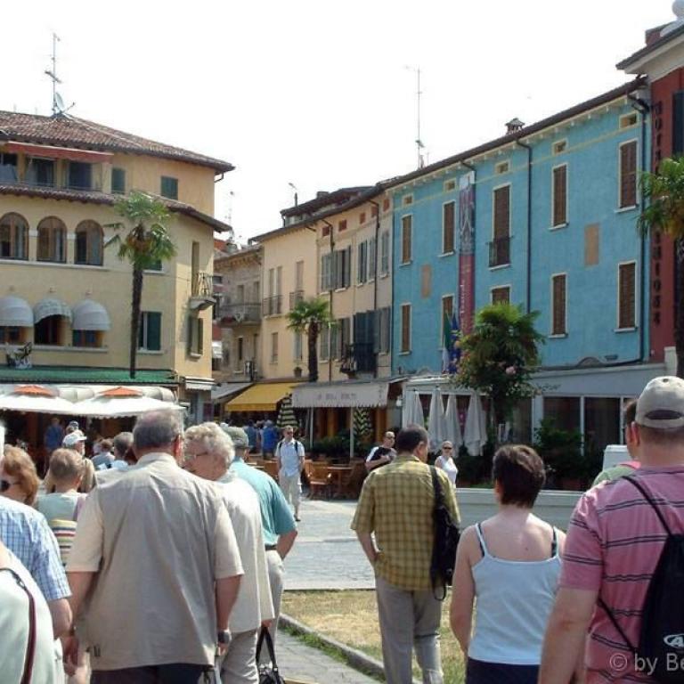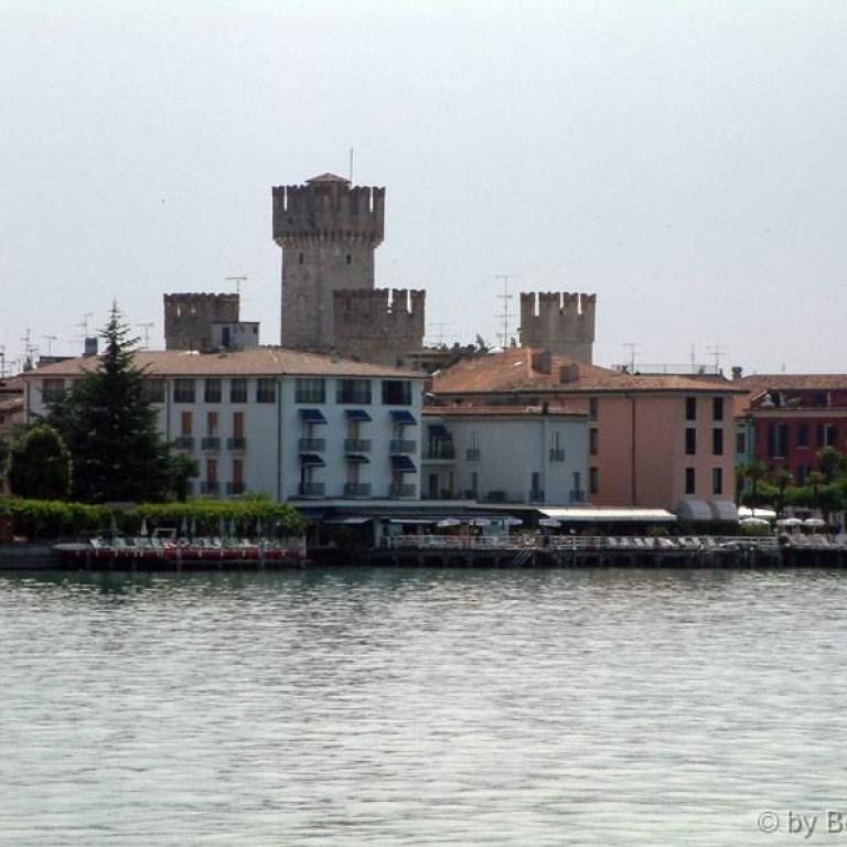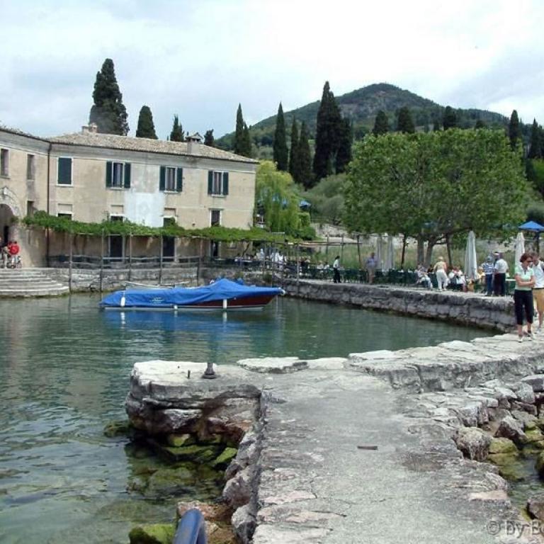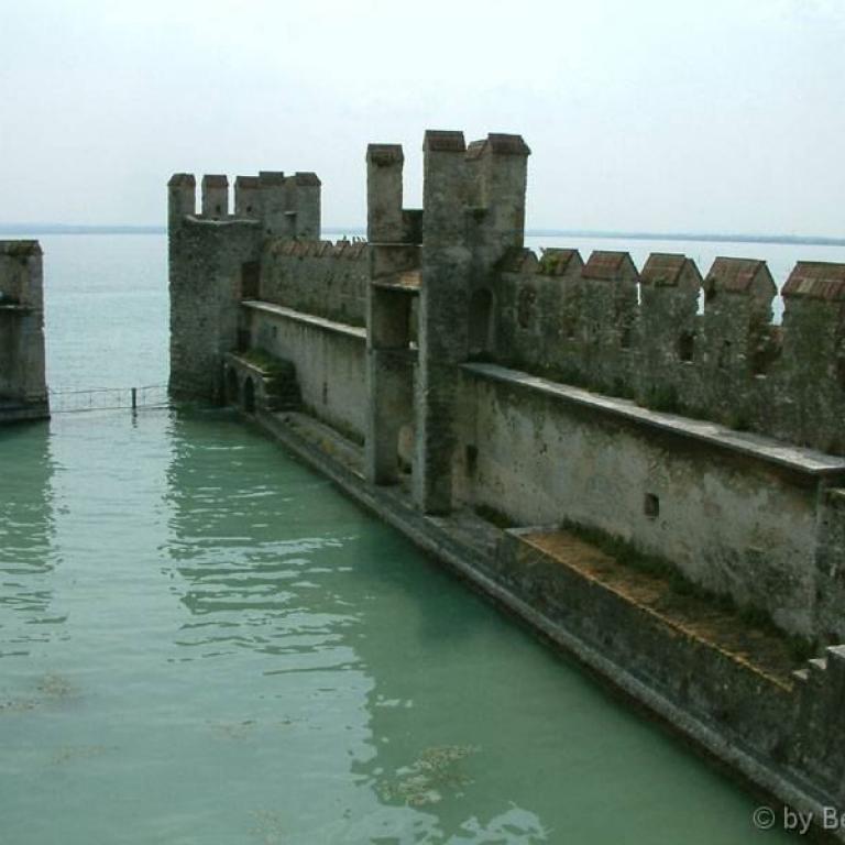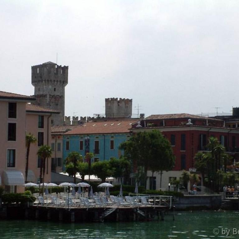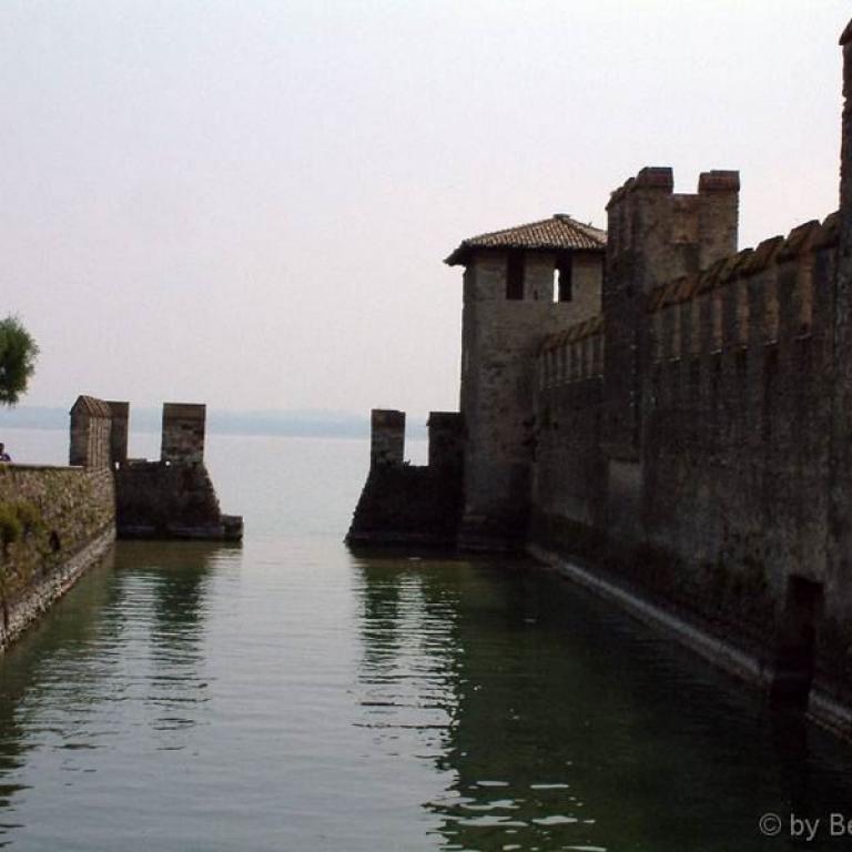 Die Römer errichteten zwei Kastelle, zwei Häfen, eine Siedlung und jene riesige Villa, die am Felsen thront und sich mächtig über dem See erhebt. Auf den Fundamenten des antiken Osthafens bauten später die Scaligeri ihre berühmte Wasserburg. Ein Bollwerk - schmuck und graziös, trutzig und stark; eines der schönsten Bauwerke der Welt. Zahlreiche Villen, Kirchen wie Santa Maria Maggiore oder San Pietro in Mavino, wunderschöne Fresken, einzigartige Torbögen, Glockentürme, Zinnen, die Bögen der Säulenhallen... die Fraktionen Lugana und Colombare, die wie einladende Gärten zum Kern des Ortes hinführen - alles Segmente aus jenem Fücher, der Sirmione heißt.