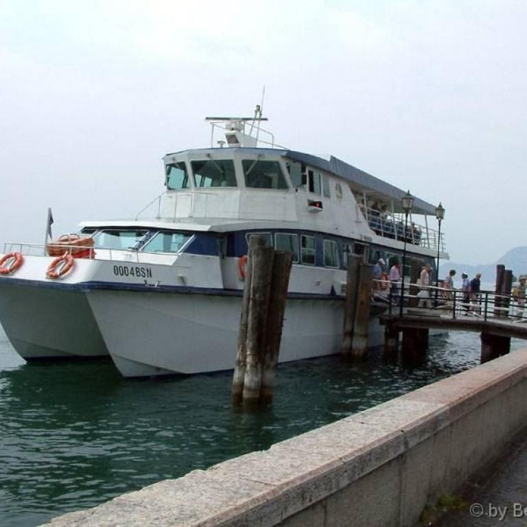 Heute ist Donnerstag. Der erste Blick aus dem Fenster verheißt nichts Gutes. Also noch mal ein runde schlafen. Als wir dann aufstehen kämpft sich so langsam die Sonne durch und als wir dann zum Frühstücken gehen ist nur noch blauer Himmel zusehen. Allerdings noch kälter als die letzten Tage. Wir beschließen trotzdem unser Vorhaben, heute mit dem Schiff nach Riva zu fahren, durchzuführen. Wir haben noch viel Zeit, Abfahrt des Schnellbootes erst um 11.05 Uhr. Mit draußen sitzen war es nichts, es gab nur eine Reihe im Freien, alle anderen Plätze waren im Innenraum und verschlossen. War wohl auch besser so, bei der Geschwindigkeit des Schiffes wäre es sicher sehr eisig gewesen, außerdem gab es auch jede Menge Spritzwasser. Ankunft in Riva 13 Uhr, es war eine ziemlich holprige Fahrt, Wasser hat eben doch ab und zu Balken. Zuerst ging es in eine Bar, unseren Durst löschen. Anschließend besichtigen wir in Riva Altstadt und Hafenanlagen. Gegen 15 Uhr verspürten wir etwas Hunger und gingen wieder in unsere Bar von vorhin und tranken einen Fruchtsaft und haben jeder einen Toast gegessen. Wir hatten uns diesmal für ein langsameres Schiff entschieden in der Hoffnung im Freien sitzen zu können und noch ein paar Bilder machen zu können. Abfahrt unseres Schiffes um 16.20 Uhr. Es war ein ziemlich großes Schiff mit Restaurant und hätte auch Autos mitnehmen können. Konnten uns einen schönen Außenplatz ergattern und freuten uns riesig darüber. Endlich ging dann die Fahrt im Schneckentempo los. Aber das es in Riva sowieso immer windig ist, kam hier zu diesem kalten Wind noch der Fahrtwind hinzu. Nach einer Viertelstunde gaben wir auf uns sind einen Stock tiefer ins Innendeck gegangen. Also wieder nichts mit Fotos. Es war eine sehr lang..... Fahrt bis zur Ankunft 19.15 in Bardolino. Wir hatten jetzt tüchtig Hunger. Nichts wie in unser Hotel, umziehen und wieder in unsere Pizzeria San Martino. Bei Heidi gab es heute Calemaris und bei mir Wiener Schnitzel mit Pommes, da hatte ich richtig Appetit drauf nach über einer Woche Pizza und Nudeln. Nach dem Essen sind wir sofort ins Hotel, da es sehr kalt geworden ist. Hier gab es den üblichen Absacker.