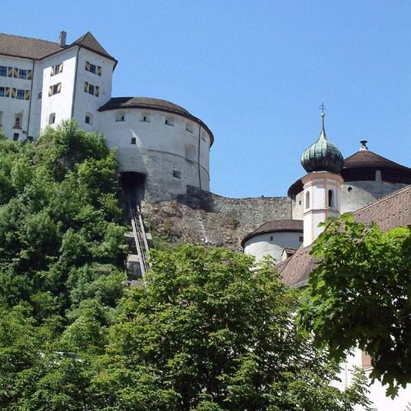 Kufstein, das Zentrum im "Ferienland Kufstein" mit der bekannten Römerhofgasse, bietet viel Sehenswertes. Die um 1205 erwähnte Festung umfasst das Festungs- und Heimatmuseum, den alten Felsengang, den tiefen Brunnen, einen Kräutergarten. Der gläserne Schrägaufzug bringt die Besucher direkt auf die Festung.