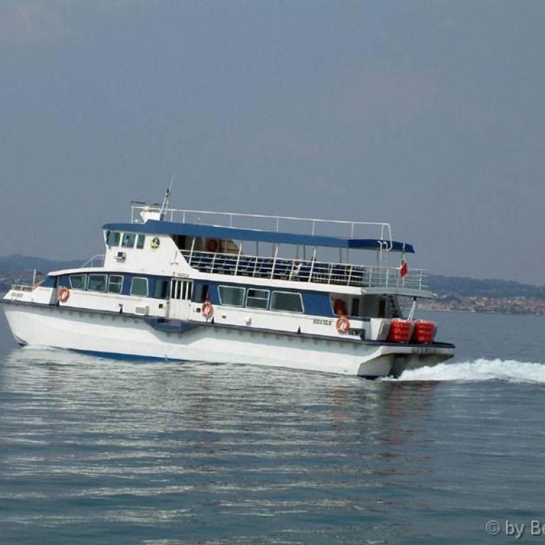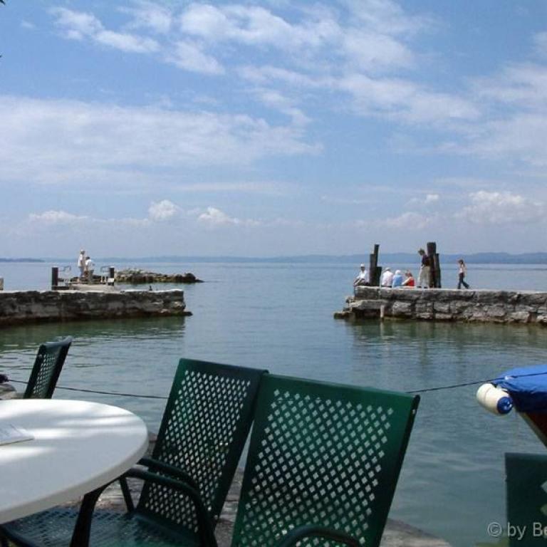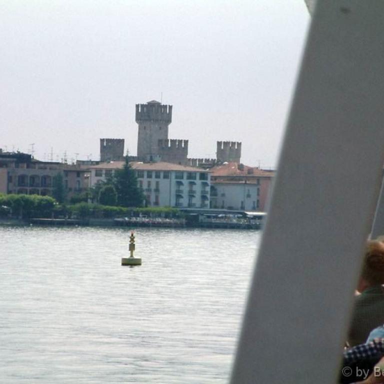 Heute ist Dienstag, es ist blauer Himmel und verspricht ein schöner Tag zu werden. Frühstück wieder auf der Terrasse, allerdings ist heute der kälteste Morgen seit wir hier sind. Nachdem wir bisher jeden Tag tüchtig gelaufen sind, beschließen wir heute mal etwas kürzer zu treten. Es geht heute mit dem Schiff nach Sirmione, Abfahrt um 9.42 Uhr, Ankunft in Sirmione gegen 10.45 Uhr. Besichtigung einer kostenpflichtigen Turmanlage und des Ortes durchgeführt. Es ist inzwischen sehr schwülwarm geworden und wir haben Durst und Hunger bekommen. Für mich gab es eine kleine Pizza und für Heidi einen doppelten Toast jeweils mit einem Glas Pampelmusensaft. Anschließend wollte Heidi noch etwas Schoppen gehen, aber der Laden hatte leider Mittagspause. Bis zur Abfahrt unseres Schiffes war noch etwas Zeit, also haben wir uns noch etwas in Sirmione umgesehen. Gegen 14 Uhr haben wir uns zur Schiffsanlagestelle begeben. Der Himmel wurde langsam wieder einmal dunkel und es fing an zu regnen. Wir beschlossen daher mit einem früheren und schnelleren Schiff zu fahren und Gott sei Dank kam es auch schon. Es war diesmal ein Katamaran, der uns in ca. 35 Minuten nach Bardolino brachte. Geregnet hat es ja schon ab Sirmione und kurz vor Garda kamen wir dann noch in einen heftigen Hagelschauer, während es in Bardolino nur leicht regnete. Wir sind dann gleich in das Hotel gegangen, haben jeder noch einen Cappuccino getrunken und sind dann in unser Zimmer zum ausruhen. Jetzt steht noch das Abendbrot aus, mal sehen wo wir heute landen. Nachdem der Hunger nicht allzu groß war haben wir nur eine Pizza zum mitnehmen gegessen, war aber nicht besonders, war viel zu fett. Anschließend sind wir in die Yacht Bar und haben dort einen Longdrink getrunken und sind dann, nachdem es noch kühler wurde als die letzten Abende direkt ins Hotel gegangen. Dort gab es noch einen Bardolino Rotwein als Schlaftrunk.