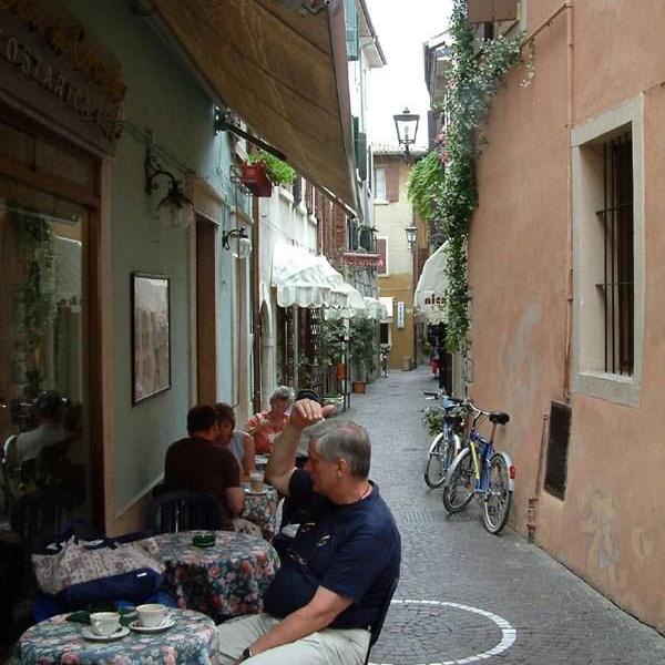 Heute ist Freitag. Heidi hat heute den dritten Tag Schmerzen im Fuß. Daher wollen wir etwas weniger laufen. Wir entscheiden uns für Garda, da ist heute auch Markt. Wir laufen gemütlich nach Garda, bummeln über den Markt, löschen unseren Durst. Heidi kauft sich eine Kleinigkeit. Dann geht es wieder zurück nach Bardolino in unser Hotel und bringen die nicht benötigten Sachen auf unser Zimmer und gehen in unsere Eisdiele. Heidi einen frozen Joghurt mit Früchten und ich einen Eisbecher mit Sahne und Früchten. Hat in der heutigen Wärme wieder einmal ganz gut geschmeckt. Anschließend sind wir wieder ins Hotel, Heidi dann in den Garten und ich übertrage Bilder und schreibe diesen Bericht. Zum Essen ging es dann wieder einmal ins "Al Porto". Bei Heidi gab es Spaghetti Carbonara und bei mir Lasagne al Forno, dazu einen halben Rotwein und hinterher den üblichen Espresso. Bei unserer Rückkehrrunde in Hotel haben wir uns noch eine Eiskugel gegönnt. Im Hotel gab es dann wieder den üblichen Absacker. Allerdings wurde es ziemlich spät, wir haben uns mit Gästen aus München noch lange unterhalten.