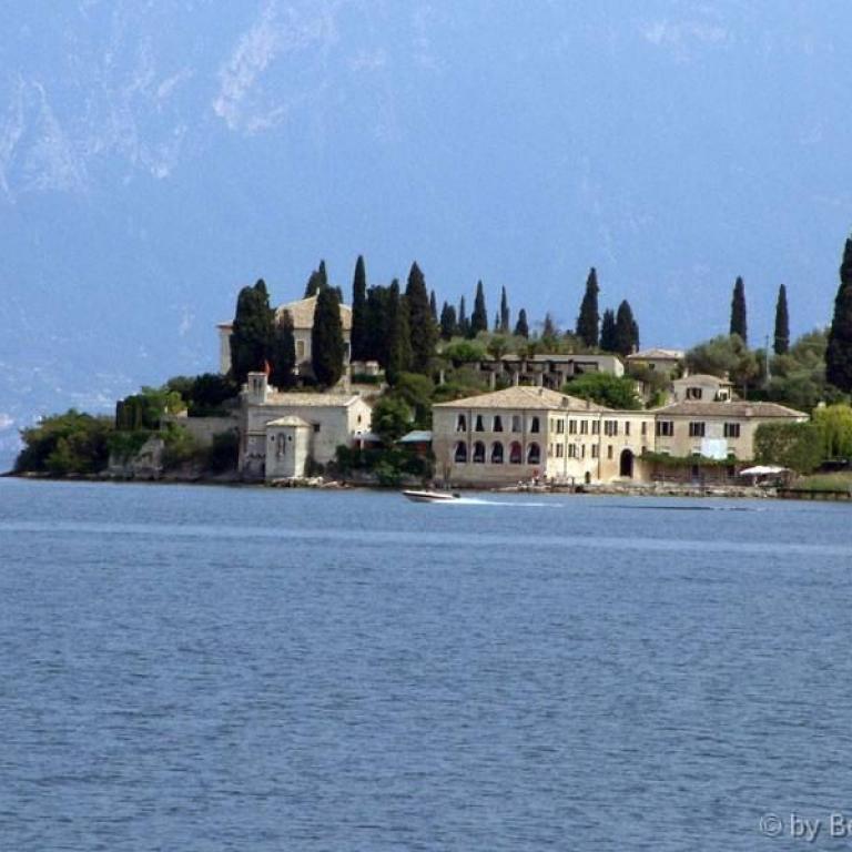 Wie ein Arm reicht diese Insel in den Gardasee und hell spiegelt das Wasser zurfick. Nicht nur Catull, auch Caesar soll hier zu Gast gewesen sein; die Langobarden gründeten im 8. Jhdt. ein Kloster; Dante ließ sich inspirieren; Carducci und Boito verbrachten hier tiefsinnige Stunden...