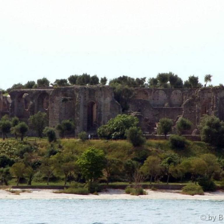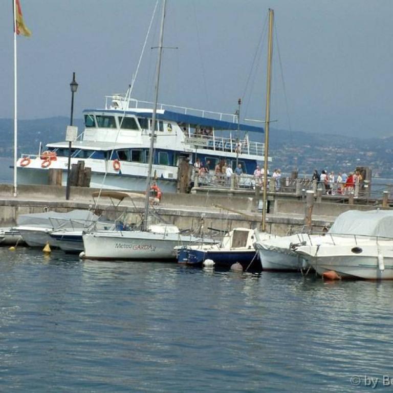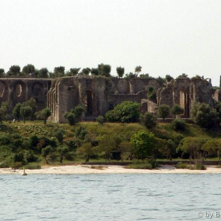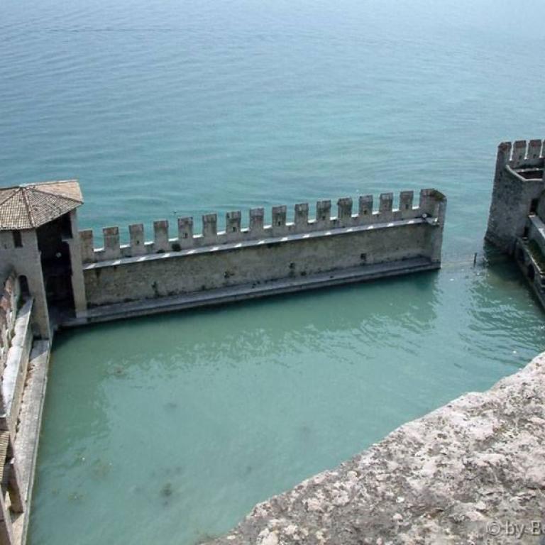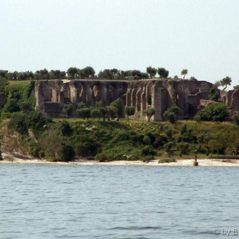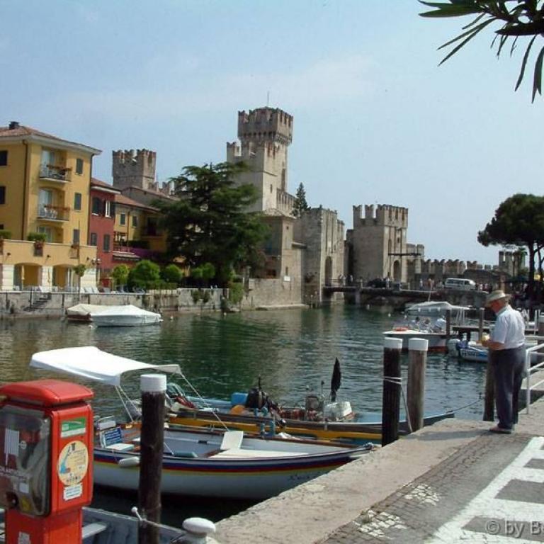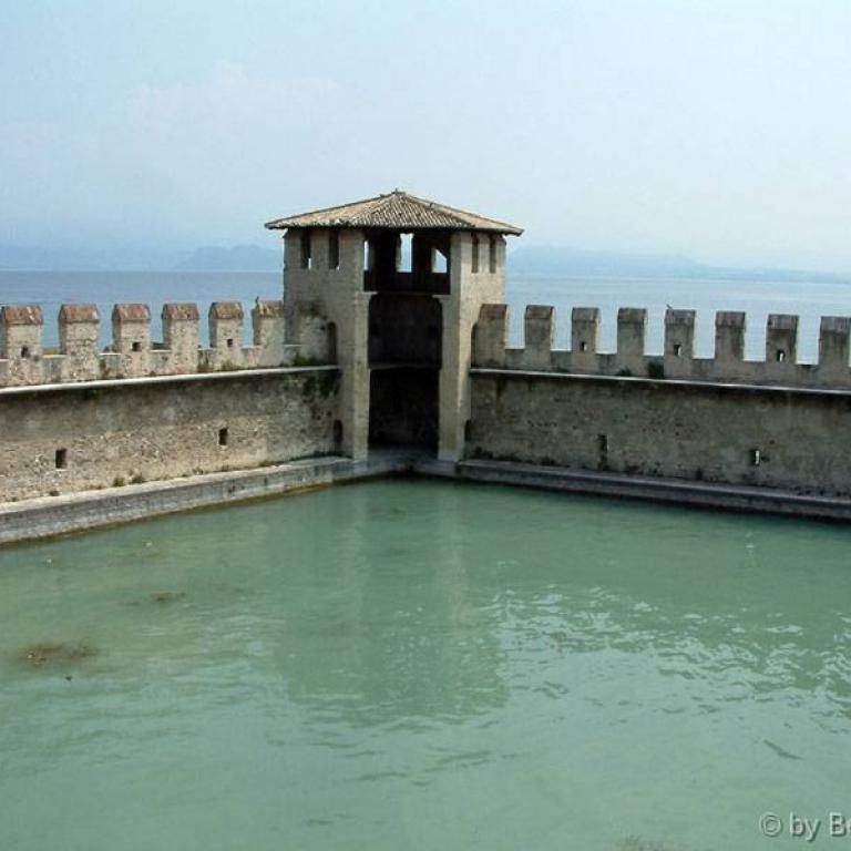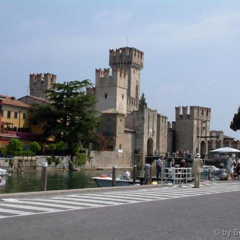 Die Römer errichteten zwei Kastelle, zwei Häfen, eine Siedlung und jene riesige Villa, die am Felsen thront und sich mächtig über dem See erhebt. Auf den Fundamenten des antiken Osthafens bauten später die Scaligeri ihre berühmte Wasserburg. Ein Bollwerk - schmuck und graziös, trutzig und stark; eines der schönsten Bauwerke der Welt. Zahlreiche Villen, Kirchen wie Santa Maria Maggiore oder San Pietro in Mavino, wunderschöne Fresken, einzigartige Torbögen, Glockentürme, Zinnen, die Bögen der Säulenhallen... die Fraktionen Lugana und Colombare, die wie einladende Gärten zum Kern des Ortes hinführen - alles Segmente aus jenem Fücher, der Sirmione heißt.
