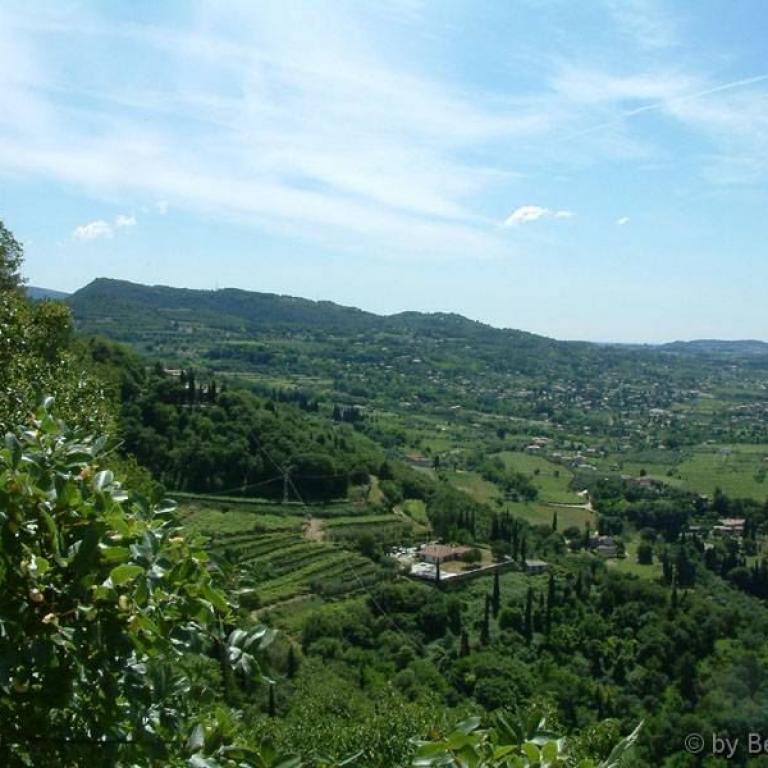 Heute ist Mittwoch. Als wir aufstehen ist zu unserer Freude wieder Sonnenschein und der Himmel ist strahlend blau. Aber es ist kühler als die letzten Tage. Wir entscheiden uns zum Frühstücken auf der Terrasse und nehmen vorsorglich Strickjacken mit und das war gut so. Nachdem wir uns gestärkt hatten, entscheiden wir uns für eine Wanderung auf den "La Rocca". Heute ist endlich einmal wunderbare Sicht. Das unbeständige Wetter hat also auch mal seine Vorteile. Oben angekommen genießen wir die herrliche Aussicht. Nach einer kurzen Rast gehen wir wieder weiter und entscheiden uns dann für den Rückweg nach Bardolino und sind dann nach insgesamt 3 Stunden wieder in Bardolino. Gehen in die Yacht Bar und essen ein Brötchen mit Wiener Schnitzel und trinken einen Fruchtsaft. Anschließend gehen wir in unser Hotel, dort gibt es noch einen Cappuccino. Dann gehen wir in unser Zimmer. Heidi zieht sich ihren Bikini an und geht in den Garten, ich sitze hier und übertrage die Bilder auf das Notebook und schreibe diesen Bericht. Zum Essen ging es dann in die Pizzeria San Martino. Heidi hatte Spaghetti und ich Lasagne. Im Hotel gab es dann den üblichen Schlaftrunk.