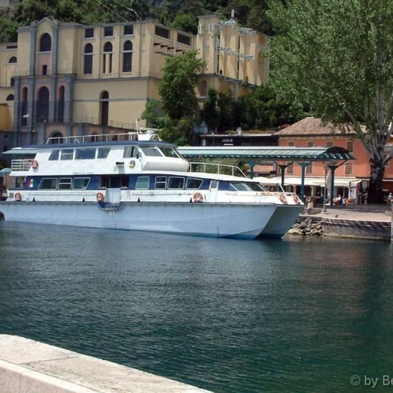 Heute ist Donnerstag. Der erste Blick aus dem Fenster verheißt nichts Gutes. Also noch mal ein runde schlafen. Als wir dann aufstehen kämpft sich so langsam die Sonne durch und als wir dann zum Frühstücken gehen ist nur noch blauer Himmel zusehen. Allerdings noch kälter als die letzten Tage. Wir beschließen trotzdem unser Vorhaben, heute mit dem Schiff nach Riva zu fahren, durchzuführen. Wir haben noch viel Zeit, Abfahrt des Schnellbootes erst um 11.05 Uhr. Mit draußen sitzen war es nichts, es gab nur eine Reihe im Freien, alle anderen Plätze waren im Innenraum und verschlossen. War wohl auch besser so, bei der Geschwindigkeit des Schiffes wäre es sicher sehr eisig gewesen, außerdem gab es auch jede Menge Spritzwasser. Ankunft in Riva 13 Uhr, es war eine ziemlich holprige Fahrt, Wasser hat eben doch ab und zu Balken. Zuerst ging es in eine Bar, unseren Durst löschen. Anschließend besichtigen wir in Riva Altstadt und Hafenanlagen. Gegen 15 Uhr verspürten wir etwas Hunger und gingen wieder in unsere Bar von vorhin und tranken einen Fruchtsaft und haben jeder einen Toast gegessen. Wir hatten uns diesmal für ein langsameres Schiff entschieden in der Hoffnung im Freien sitzen zu können und noch ein paar Bilder machen zu können. Abfahrt unseres Schiffes um 16.20 Uhr. Es war ein ziemlich großes Schiff mit Restaurant und hätte auch Autos mitnehmen können. Konnten uns einen schönen Außenplatz ergattern und freuten uns riesig darüber. Endlich ging dann die Fahrt im Schneckentempo los. Aber das es in Riva sowieso immer windig ist, kam hier zu diesem kalten Wind noch der Fahrtwind hinzu. Nach einer Viertelstunde gaben wir auf uns sind einen Stock tiefer ins Innendeck gegangen. Also wieder nichts mit Fotos. Es war eine sehr lang..... Fahrt bis zur Ankunft 19.15 in Bardolino. Wir hatten jetzt tüchtig Hunger. Nichts wie in unser Hotel, umziehen und wieder in unsere Pizzeria San Martino. Bei Heidi gab es heute Calemaris und bei mir Wiener Schnitzel mit Pommes, da hatte ich richtig Appetit drauf nach über einer Woche Pizza und Nudeln. Nach dem Essen sind wir sofort ins Hotel, da es sehr kalt geworden ist. Hier gab es den üblichen Absacker.