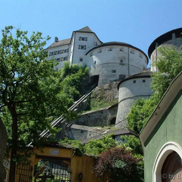 Kufstein, das Zentrum im "Ferienland Kufstein" mit der bekannten Römerhofgasse, bietet viel Sehenswertes. Die um 1205 erwähnte Festung umfasst das Festungs- und Heimatmuseum, den alten Felsengang, den tiefen Brunnen, einen Kräutergarten. Der gläserne Schrägaufzug bringt die Besucher direkt auf die Festung.